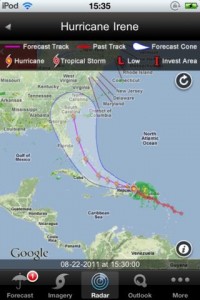 10. Use apps! Apps can help you track Hurricane Irene to helping you prepare your To-Do list. Apps like Hurricane HD lets you track storms, with moving radar and satellite imagery from the National Hurricane center, there’s also the great Weatherbug and Weather Channel apps and iMapStorm and for those who want weather radio on their phone take a peek at iMap Weather Radio app11. Ohhh & don’t forget to buy/use a car charger for your phone if you lose power in the home! FEMA has also recently developed an Android app. The FEMA App contains preparedness information for different types of disasters, an interactive checklist for emergency kits, a section to plan emergency meeting locations and information on how to stay safe and recover after a disaster.