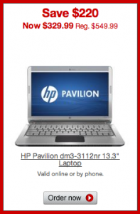 This is the lowest price you’re going to find on a lightweight but not lightly powered 13″, one inch thick, under 4 lbs laptop this holiday season, so don’t hesitate to grab the HP Pavilion dm3 from Staples.