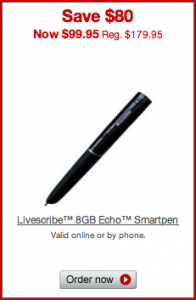 If you read Justin Alcon’s review of the Livescribe Echo smartpen and wanted one but balked at the $179 price tag on the top-of-the-line 8GB model, then this deal with blow you away—Staples is selling this monster of a smartpen for only $99 (no rebates attached!).